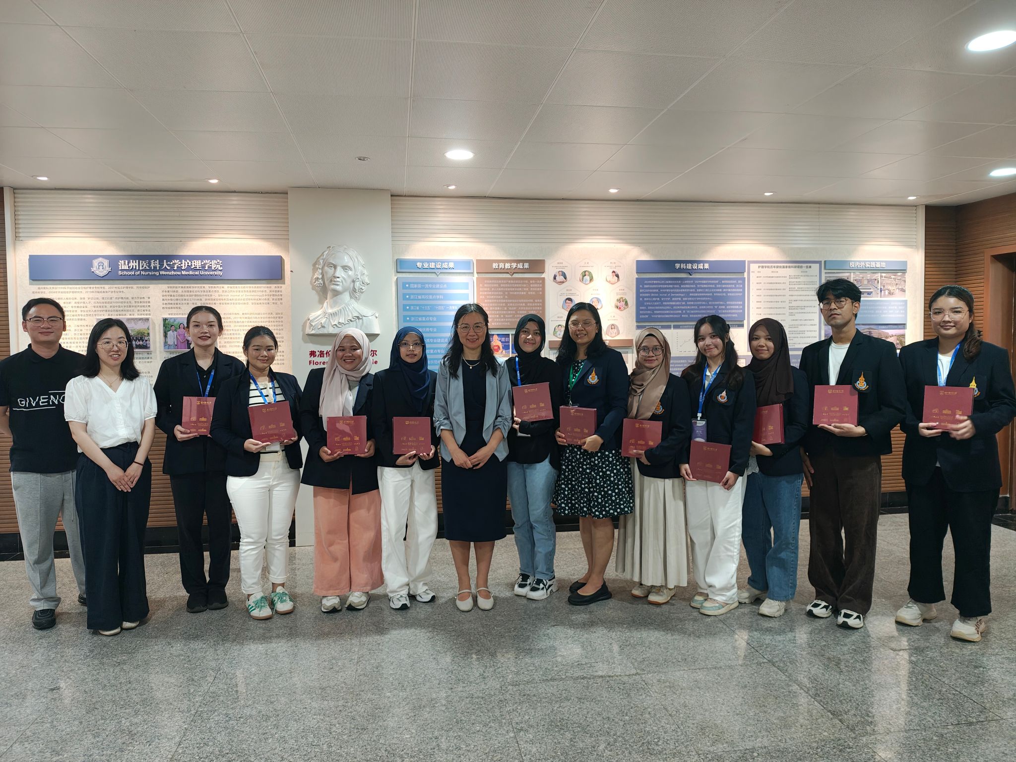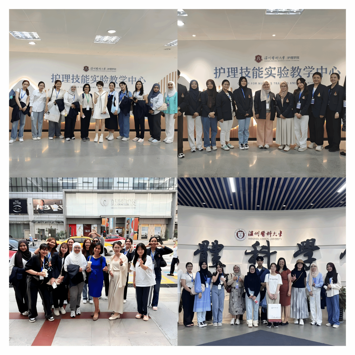 两批代表团分别由宋卡王子大学Kesorn Promlek教授与Pimpisa Saksorngmuang教授带队,包括20名护理专业学生组成。本次学术交流围绕“学术交流-临床见习-文化体验”三大主线展开活动。学术交流方面,代表团参观av在线看 校史馆、人体科学馆及护理实验室,并围绕实验教学创新与实验室师生展开专题研讨。临床实践方面,代表团赴av在线看 附属医院参访交流。附属第一医院世耀护士长,附属第二医院、育英儿童医院张春梅副院长,附属康宁医院吴春华主任,茶山街道卫生院贾建新院长等率护理团队热情接待代表团。各附属医院结合自身特色展示护理专业优势,并表达了与泰国宋卡王子大学深化合作,系统推进教育资源共享、学术成果共育与医疗技术互通的意愿文化体验方面在av在线看 教师和志愿者陪同下,代表团游览五马街历史文化街区,感受温州传统商业文化与南戏文化。