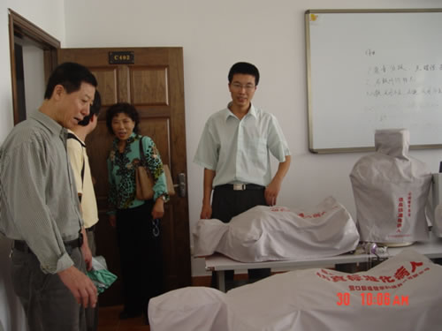 2005年9月30日上午10,在温州医av在线看 附属二院郑志强教授和林胜璋副教授的陪同下,中华医学会外科学分会副主任委员、北京大学冷希圣教授参观了av在线看 的示教室和实验室。在护理示教室,他对今天温医护理学生拥有的学习条件感到由衷的高兴,并认为av在线看 护理学生拥有的实验条件决不亚于北大av在线看 学生。