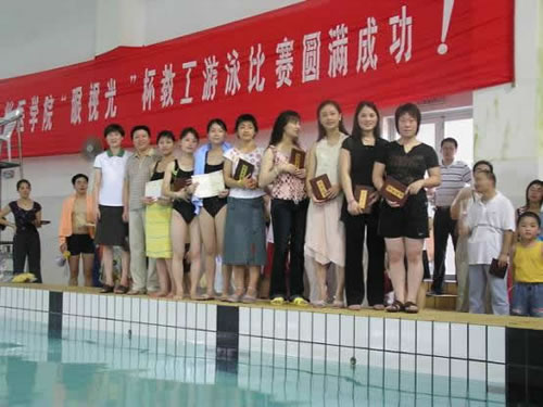 7月3日上午,在av在线看 路校区游泳馆举办的2005“眼视光杯”教职工游泳比赛中,av在线看 选手姚颖颖获得女子100米自由泳第四和女子50米蛙泳第七的可喜成绩,在男女4*50米接力赛中,av在线看 代表队获得第五名。