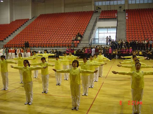 为庆祝第96个“三.八”国际劳动妇女节,推广全民健身运动,提高女职工身体素质,校工会在节日期间举行广播体操比赛。