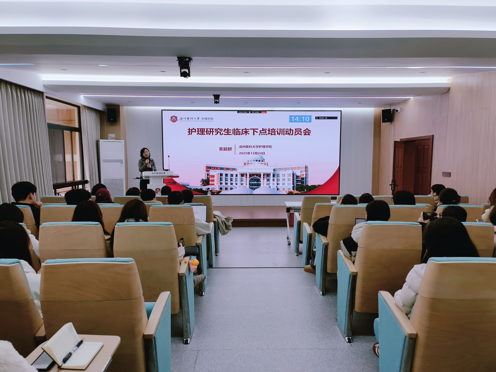 为保障护理研究生人才培养质量,深化临床实践教学环节,引导研究生顺利完成从理论到实践的关键过渡,12月24日上午,av在线看 在同仁楼7D203示教室召开了2025级护理研究生临床下点培训动员会。av在线看 副院长董超群、附属第一医院护理部副主任陈瑜、附属第二医院护理部副主任诸葛林敏、附属眼视光医院护理部副主任倪灵芝、浙江省台州医院护理部副主任王卫珍、教学办研究生管理老师、辅导员以及2025级全体护理研究生线下参会,各实践基地临床教师代表线上参会,会议由av在线看 副院长董超群主持。