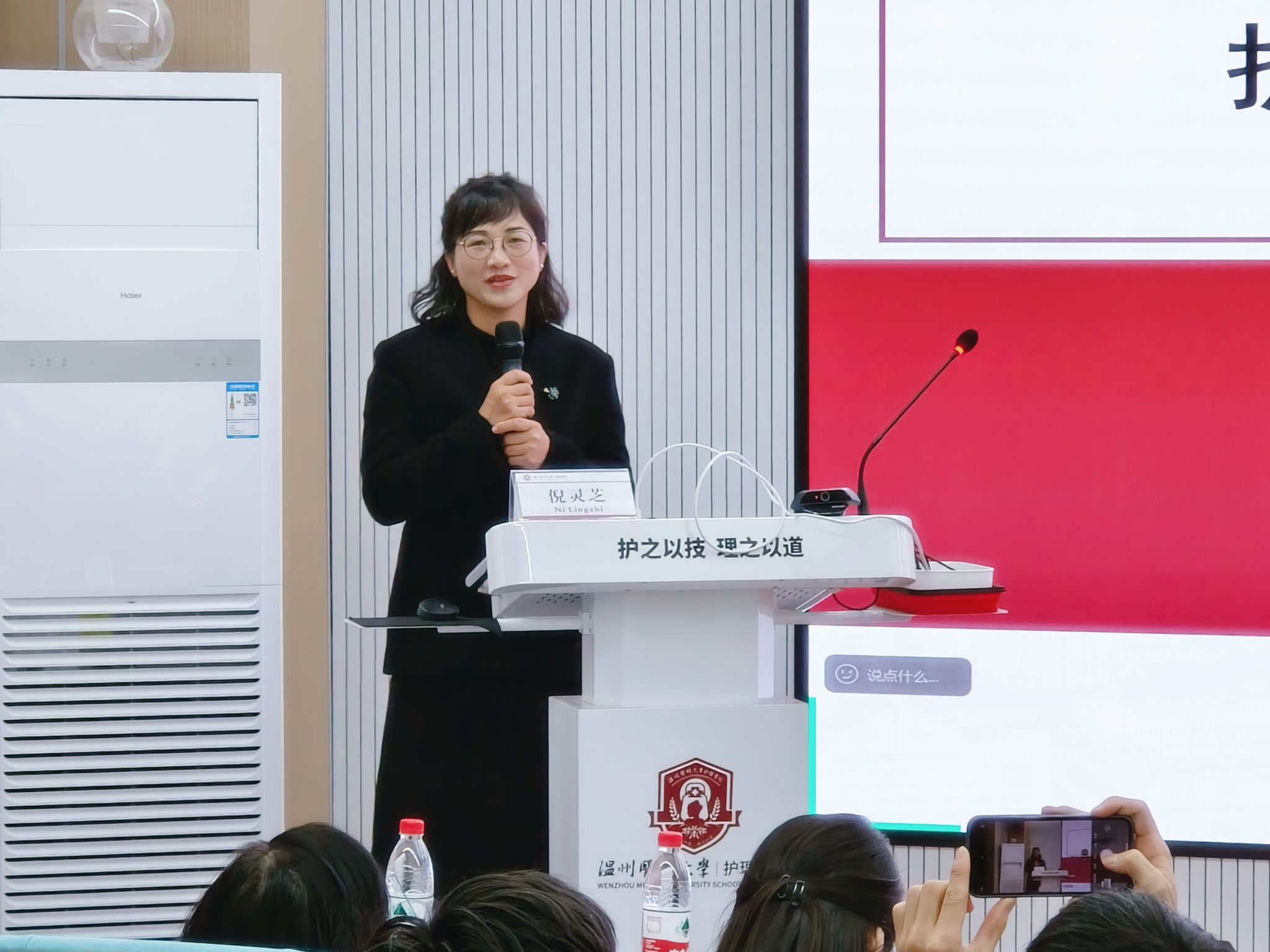 倪灵芝副主任结合附属眼视光医院眼科特色,阐述了眼视光护理方向的轮转要求与特色教研平台,鼓励同学们充分利用优质资源,深耕专业领域。