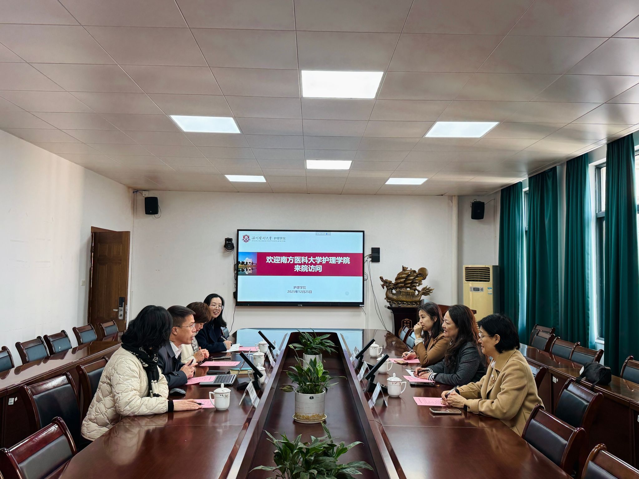 2025年12月25日下午,南方医科大学av在线看 副院长罗晨玲、副院长史蕾一行来院访问交流,av在线看 院长蔡福满、副院长黄小琼、副院长董超群、教学办副主任黄天烨出席座谈会。
