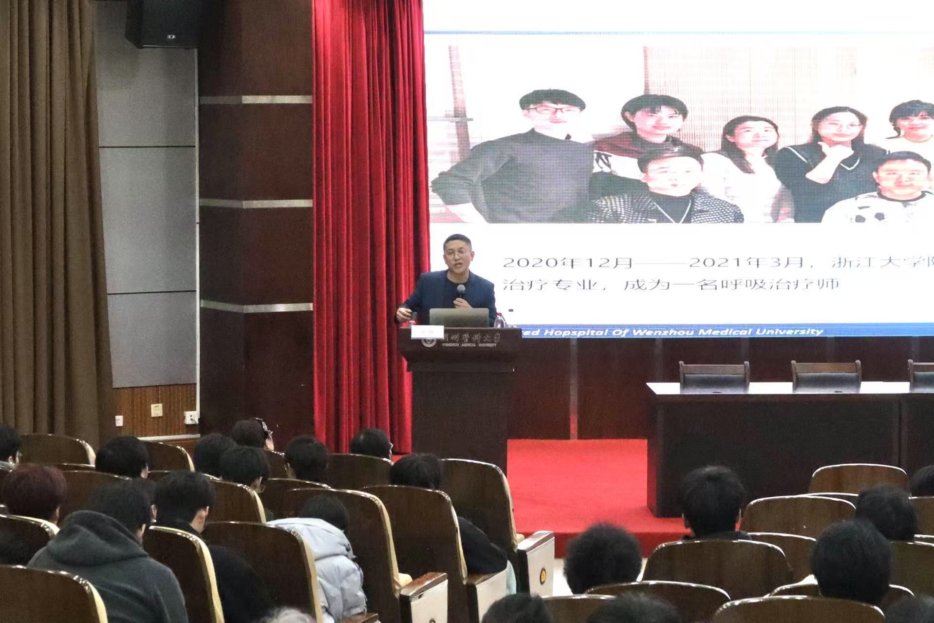 接着,卫庆老师结合全国男护士发展论坛经历,分享男护榜样的成长成就,叮嘱学子重视科研创新与跨学科学习,为其明确学习与成长方向。此外,他还结合行业数据及温医大附一岗位案例,展现男护士职业潜力,增强学子信心。分享尾声,卫庆老师回顾自己抗疫坚守经历,鼓励学子在实践中成长。