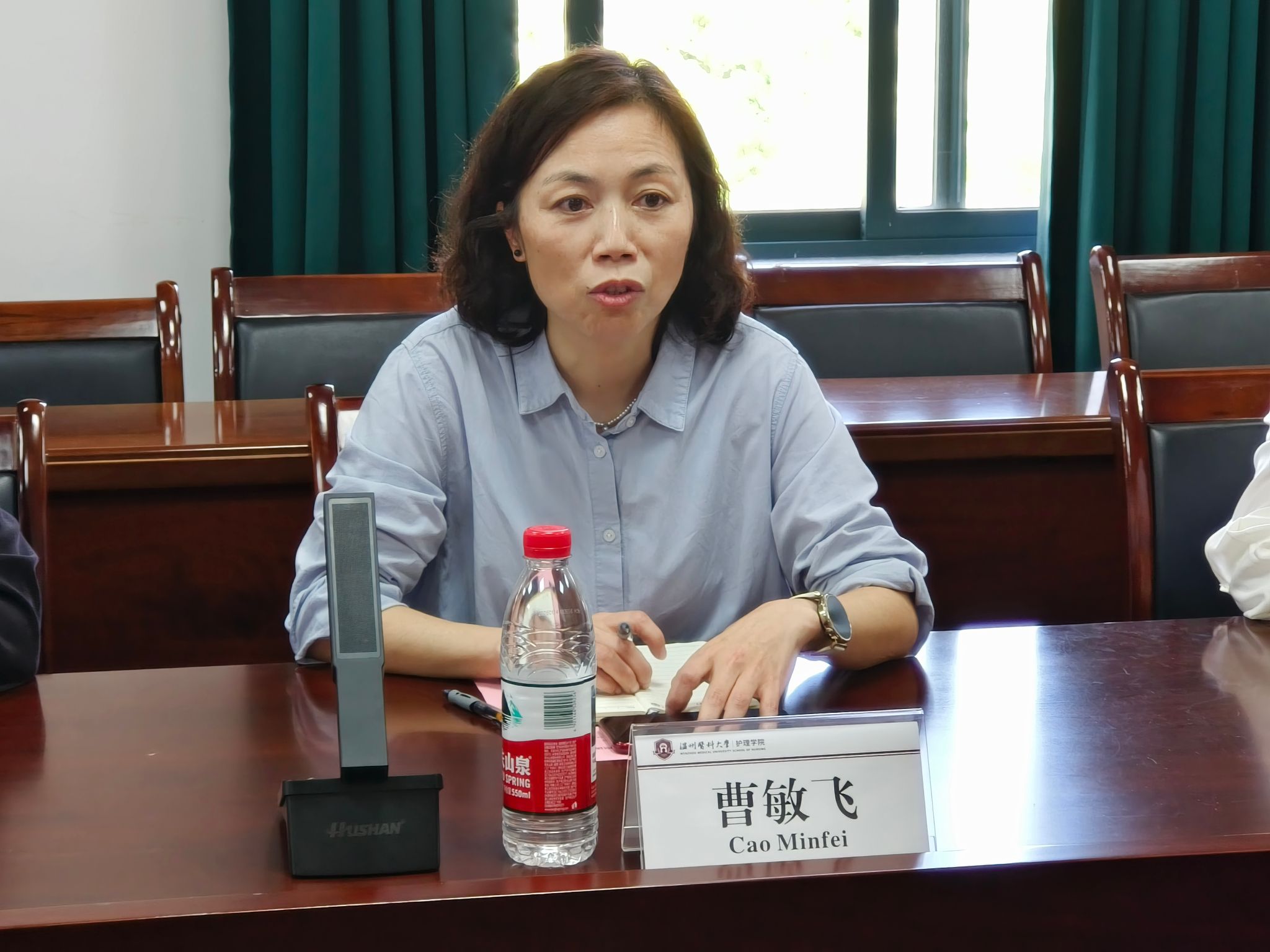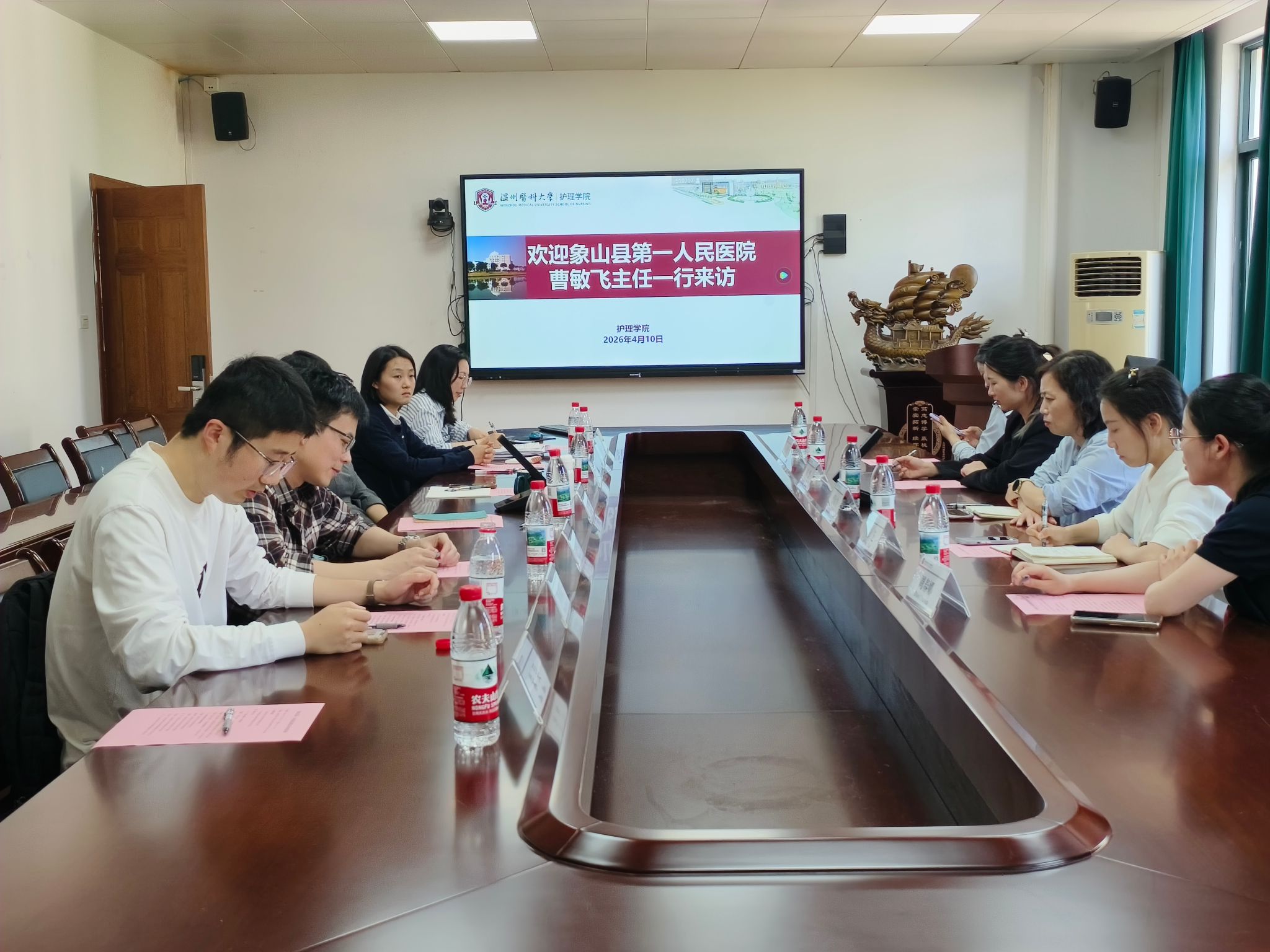 2026年4月10日下午,象山县第一人民医院护理管理中心主任曹敏飞一行来院访问交流。av在线看 院长蔡福满、副院长董超群、专任教师代表及教学办公室相关老师参会,双方围绕av在线看 建设、学科发展与科研创新等核心内容深入研讨。