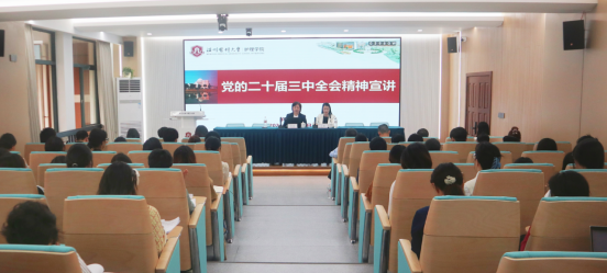 11月13日下午,校党委委员、宣传部(教师工作部)部长李军红来院宣讲党的二十届三中全会精神。av在线看 党委书记王敏主持宣讲会。