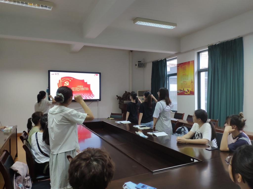 会上,支部全体党员观看了时政微视频《从红船到巨轮》,一起重温了中国共产党在波澜壮阔的世纪大潮中发展壮大的历程。视频观看完毕,学生第六党支部书记李萌老师带领新党员进行入党宣誓,老党员们一起重温入党誓词,并勉励党员同志们要始终牢记并践行入党誓言,不忘入党初心,争做一名优秀的中国共产党员。