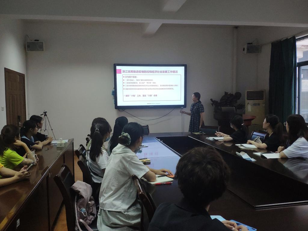 学生第五党支部书记王茹新老师带领全体党员学习了省委十四届七次全体(扩大)会议精神。通过这次集体学习,党员同志们深刻认识到建设“重要窗口”的内涵要求、13项重大举措以及建设“重要窗口”的重大意义。学习之后,党员同志们热烈讨论如何为建设“重要窗口”贡献自己的青春力量。
