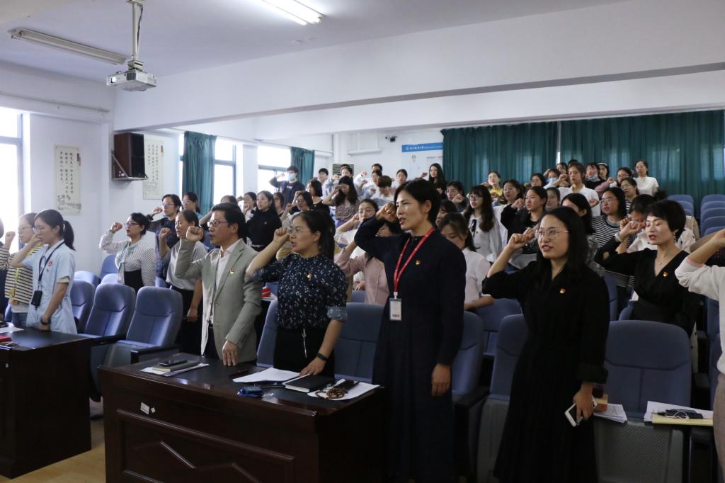 “我志愿加入中国共产党,拥护党的纲领,遵守党的章程,履行党员义务,执行党的决定......”会场,全体党员起立,举起右手,现场响起了阵阵激昂的宣誓声,每个党员都用发自内心的声音抒发对党忠诚的决心,面对着党旗,大家重新接受了一次身心的特殊洗礼。