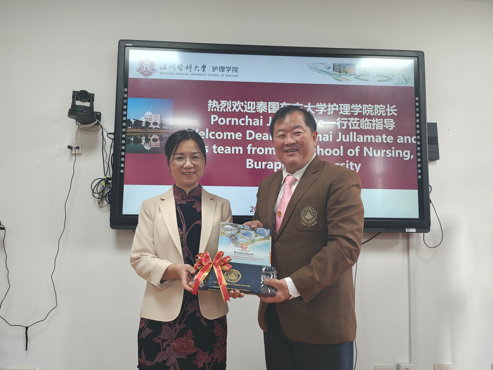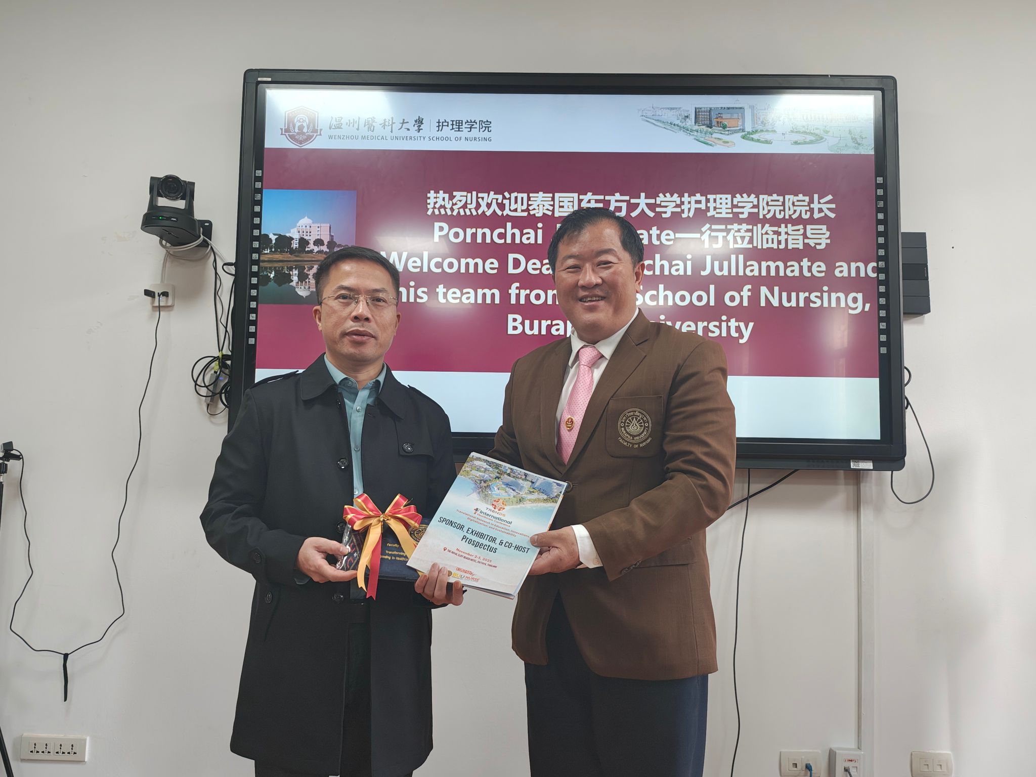 会议尾声,Pornchai Jullamate院长向av在线看 领导赠送了泰国特色礼品,以此表达对双方友谊与合作的珍视。此次会议的成功举办,不仅展示了av在线看-熟女av-色色视频 与泰国东方大学av在线看 在博士合作上的积极态度与坚定决心,也为中泰护理教育的合作与发展注入了新的活力与动力。双方将携手并进,共同书写中泰教育合作的新篇章。