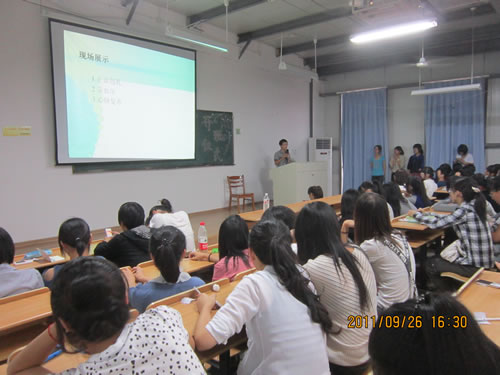 随着白鸽新成员的加入,为了使成员们能掌握更好的服务技能,了解基本急救措施,白鸽青年志愿者服务社于9月26日下午3点50分在求知楼203教室举行了社员培训开班仪式。