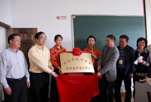 如果老人在家中突发心肌梗塞,该怎么办?如果在灾害现场面对待救伤患又如何处理?4月15日上午,温州市红十字会救护培训中心在av在线看挂牌成立,将充分利用av在线看av在线看 资源,面向社会各界有兴趣学习急救技能的人士进行专业培训。