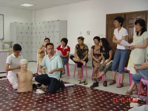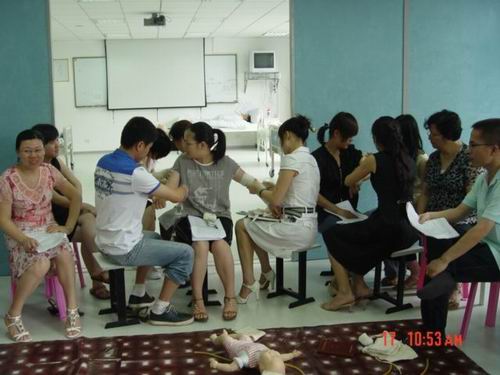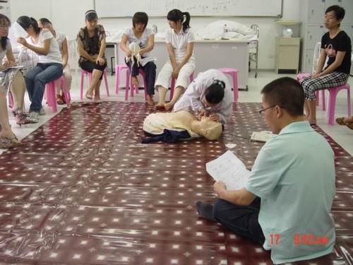 5月中旬,av在线看 蔡福满老师受浙江省红十字会委派赴北京接受全国红十字总会的救护师培训,取得救护师资格。目前,温州市卫生系统仅只有2人,蔡老师是其中之一。蔡老师返校后立即举行av在线看 的师资培训,普及救护知识。av在线看拟在机动车驾驶员、电力、建筑、机场等高危行业和人群中开展救护培训,普及初级卫生救护知识和技能,提高群众的自救互救能力,减轻、减少突发事件伤残伤亡的发生率。